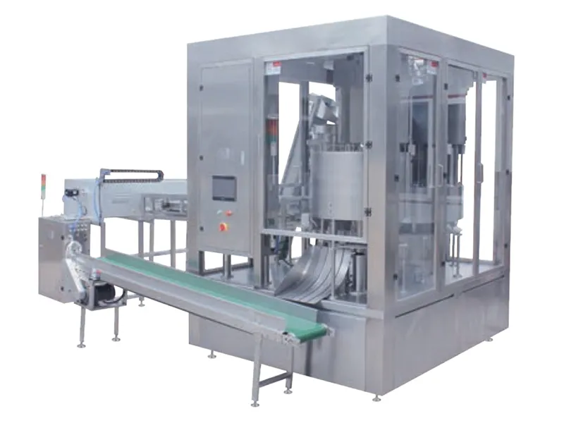 ماكينة تعبئة وتركيب أغطية أكياس الفوهات الدوارةContinuous Rotary Spout Pouch Filling and Capping Machine